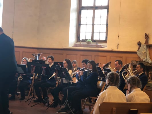 Trotz wunderschönem Winterwetter, fanden viele den Weg in die Kirche Thierachern um das Konzert der Musikgesellschaft zu besuchen. Das zahlreiche Publikum wurde mit abwechslungsreicher Musik belohnt. Klassische Musik wie „Panis Angelicus“ und die „Johann Fux Suite“ wurden mit viel Gefühl vorgetragen. Das Holzbläser-Ensemble (Klarinette, Saxophon, Querflöte, Oboe) spielten die Stücke „Minuet“ von Mozart und „Sarabande“ von Händel. Die Romanze mit dem Titel „Giudita“, beinhaltete ein Solo für Oboe, das von Eliane Mägert vorgetragen wurde. Ein weiteres Solo wurde von Daniel Haldimann gespielt, im bekannten Stück „Der einsame Hirte“ von James Last. Auch schottische Klänge, sowie Gospelmusik gehörten zum vielfältigen Programm. Unsere zwei Jungmusikantinnen Nina und Bianca Meinen unterhielten mit Konrad Zobrist in einem Zwischenspiel das Publikum mit vier Einlagen, unter anderem spielten sie den Ohrwurm „ By the Rivers of Babylon“. Das Konzert wurde mit dem weihnächtlichen Stück „The Spirit of Christmas“ und „Stille Nacht“ feierlich abgeschlossen. Im Anschluss lud die Musikgesellschaft das Publikum ein, in der Pfrundschür bei selber gemachtem Glühwein und Backwaren, gemeinsam den Nachmittag ausklingen zu lassen.