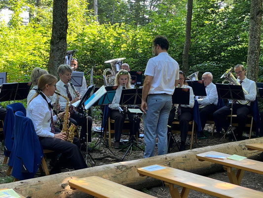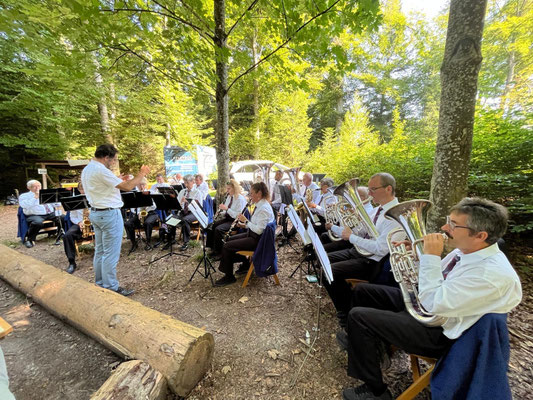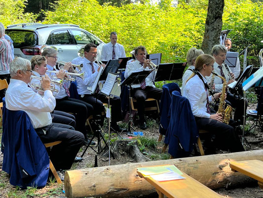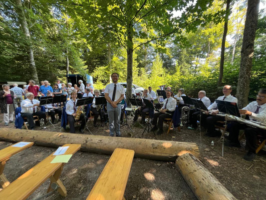 haben sich über die schöne Waldumgebung ablenken können während die Erwachsenen den Worten von Frau Pfr. Nicole Schulz Schibler folgten. Während der Predigt spielten wir verschiedene Choräle aus