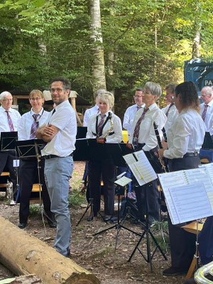 Bei wunderbaren Sommertemperaturen durften wir den Waldgottesdienst mit drei Taufen am Sonntag, 10. August 2025 musikalisch umrahmen. Die drei Täuflingen